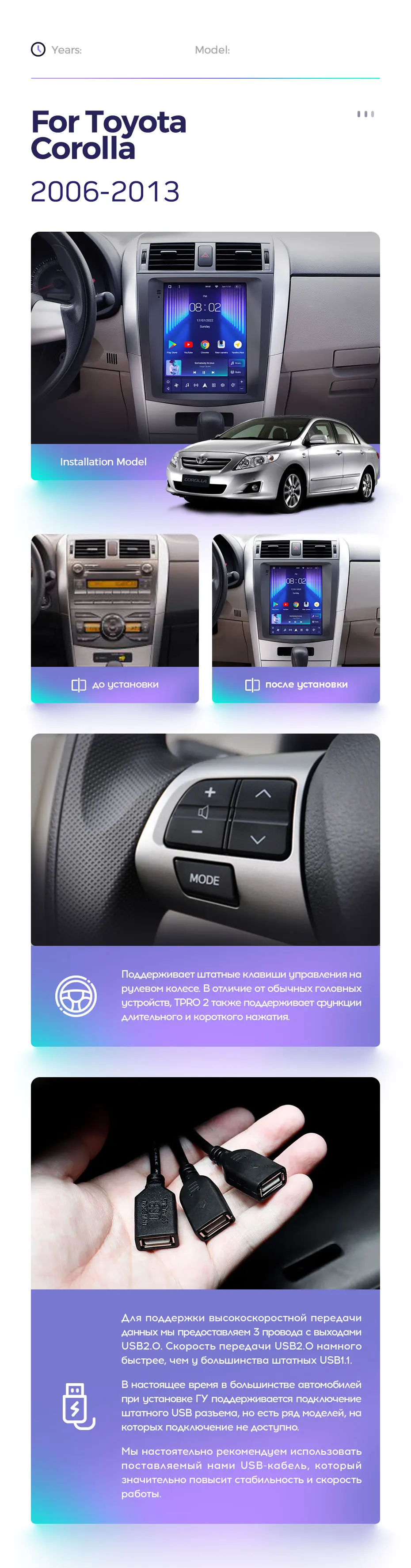 Штатная магнитола Tesla style Teyes TPRO 2 3/32 Toyota Corolla 10 E140 E150 (2006-2013) - купить всего за 41 500 руб. в интернет-магазине в Пензе Teyes.com.ru. ✓ Самый лучший выбор мультимедиа ✓ Лучшая замена штатному ГУ ✓ Тел. +7 (800) 775-31-74