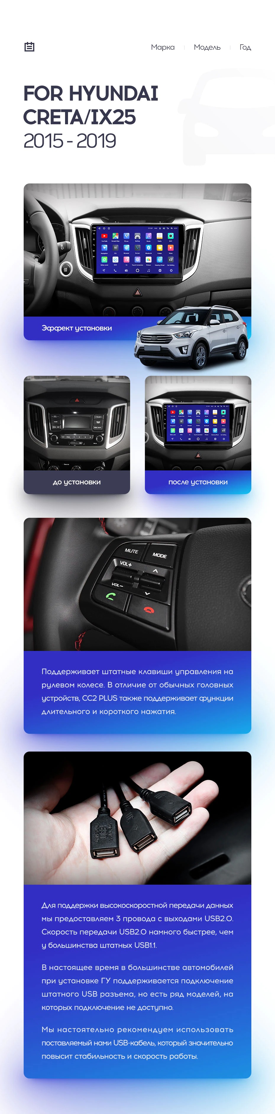 Штатная магнитола Teyes CC2 Plus 4/32 Hyundai Creta (2015-2020) - купить всего за 33 500 руб. в интернет-магазине в Пензе Teyes.com.ru. ✓ Самый лучший выбор мультимедиа ✓ Лучшая замена штатному ГУ ✓ Тел. +7 (800) 775-31-74