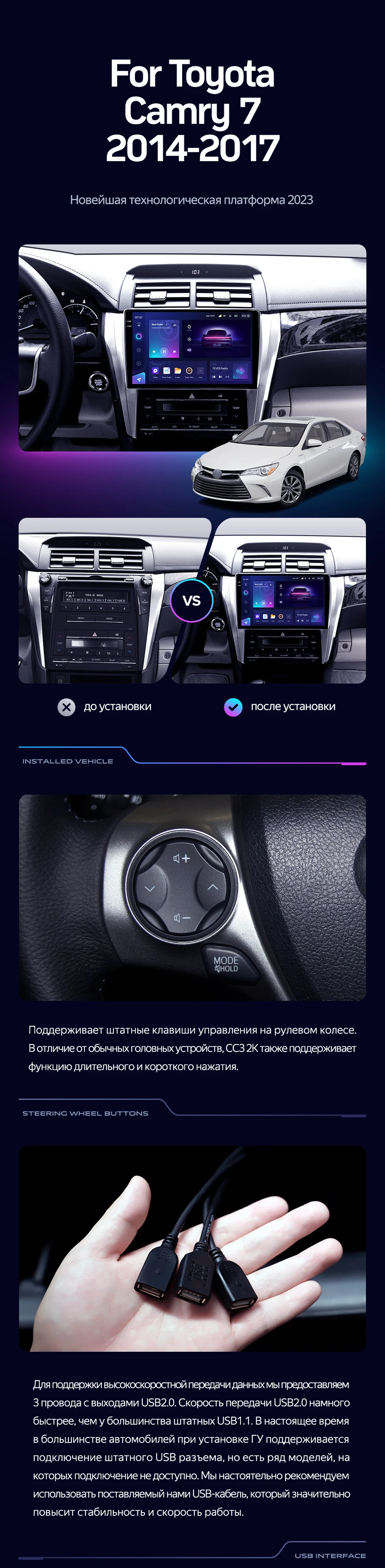 Штатная магнитола Teyes CC3 2K 4/32 Toyota Camry 7 XV 50 55 (2014-2017) (13") F4 - купить всего за 41 400 руб. в интернет-магазине в Пензе Teyes.com.ru. ✓ Самый лучший выбор мультимедиа ✓ Лучшая замена штатному ГУ ✓ Тел. +7 (800) 775-31-74