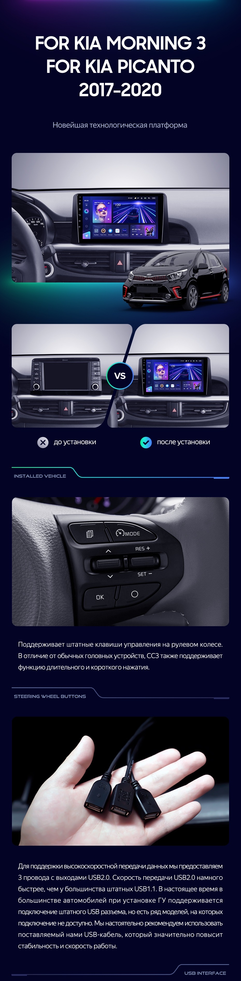 Штатная магнитола Teyes CC3 2K 4/64 Kia Picanto (2017-2020) Тип-A - купить всего за 47 900 руб. в интернет-магазине в Пензе Teyes.com.ru. ✓ Самый лучший выбор мультимедиа ✓ Лучшая замена штатному ГУ ✓ Тел. +7 (800) 775-31-74