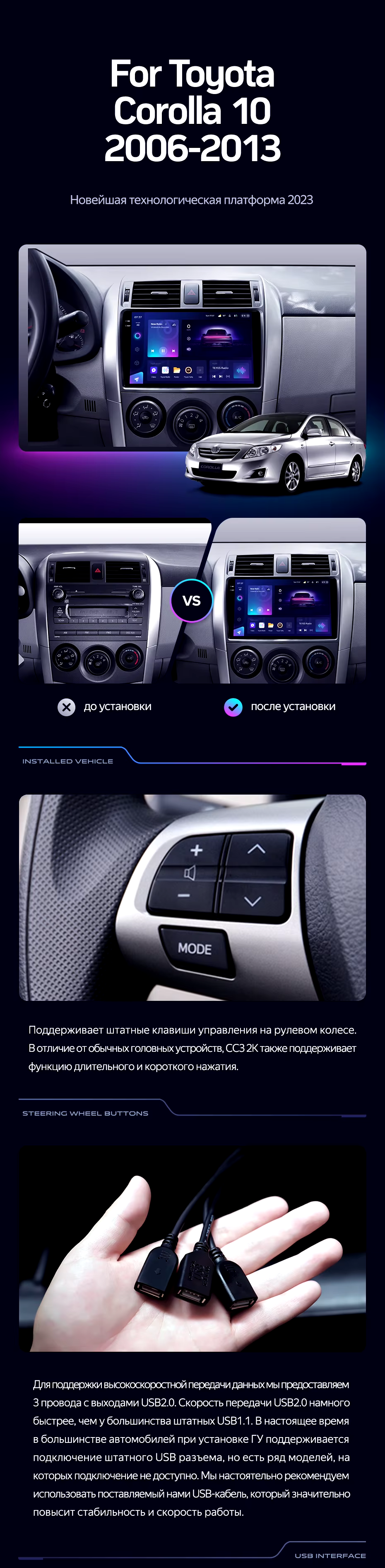 Штатная магнитола Teyes CC3 2K 6/128 Toyota Corolla 10 E140 E150 (2006-2013) Тип-B (13") - купить всего за 46 560 руб. в интернет-магазине в Пензе Teyes.com.ru. ✓ Самый лучший выбор мультимедиа ✓ Лучшая замена штатному ГУ ✓ Тел. +7 (800) 775-31-74