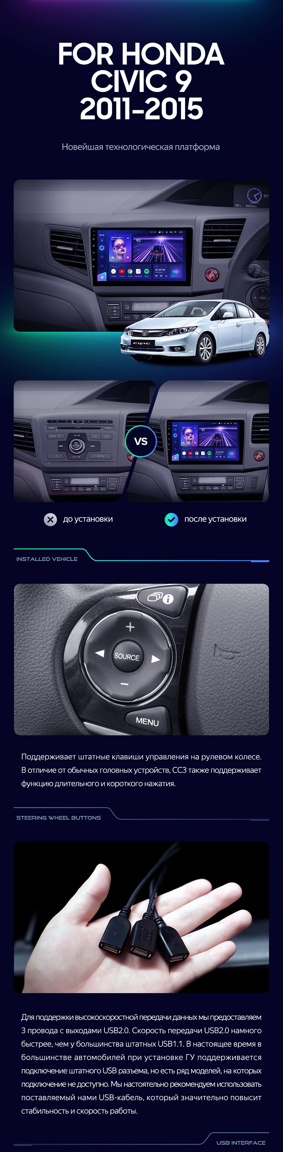 Штатная магнитола Teyes CC3 4/32 Honda Civic 9 FB FK FD (2011-2015) - купить всего за 33 330 руб. в интернет-магазине в Пензе Teyes.com.ru. ✓ Самый лучший выбор мультимедиа ✓ Лучшая замена штатному ГУ ✓ Тел. +7 (800) 775-31-74