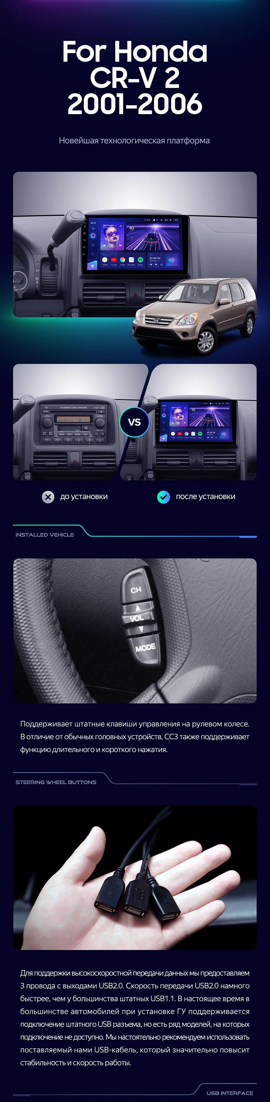 Штатная магнитола Teyes CC3 4/32 Honda CR-V 2 (2001-2006) - купить всего за 32 180 руб. в интернет-магазине в Пензе Teyes.com.ru. ✓ Самый лучший выбор мультимедиа ✓ Лучшая замена штатному ГУ ✓ Тел. +7 (800) 775-31-74