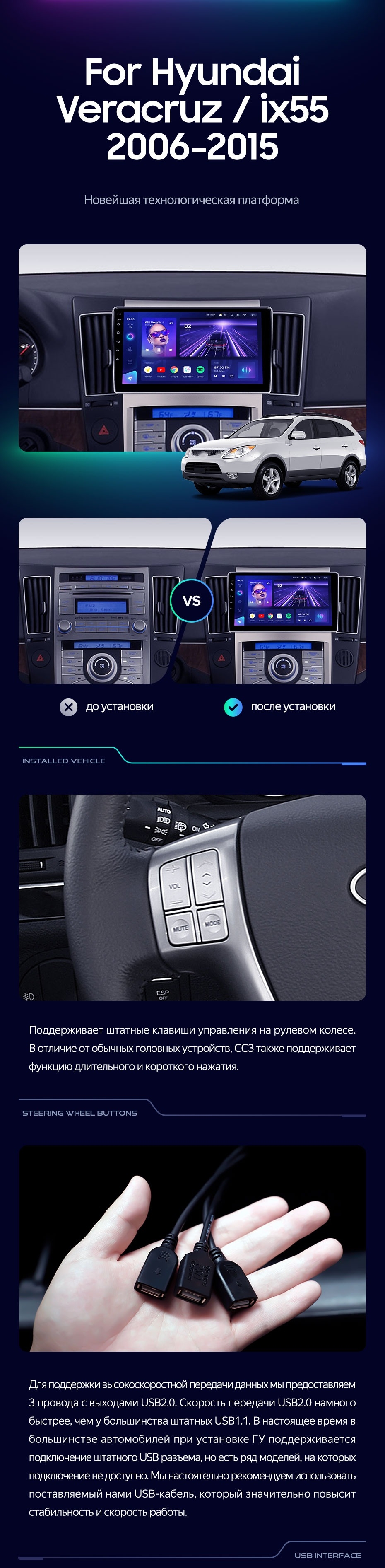 Штатная магнитола Teyes CC3 4/32 Hyundai ix55 (2006-2015) - купить всего за 34 730 руб. в интернет-магазине в Пензе Teyes.com.ru. ✓ Самый лучший выбор мультимедиа ✓ Лучшая замена штатному ГУ ✓ Тел. +7 (800) 775-31-74