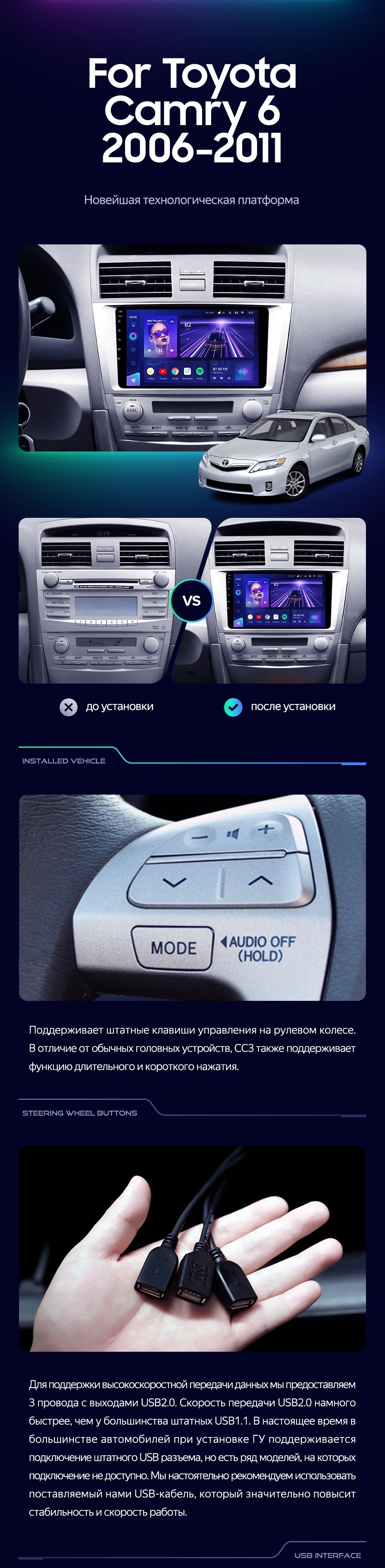 Штатная магнитола Teyes CC3 4/32 Toyota Camry 6 XV 40 (2006-2011) 10" F5 - купить всего за 32 320 руб. в интернет-магазине в Пензе Teyes.com.ru. ✓ Самый лучший выбор мультимедиа ✓ Лучшая замена штатному ГУ ✓ Тел. +7 (800) 775-31-74