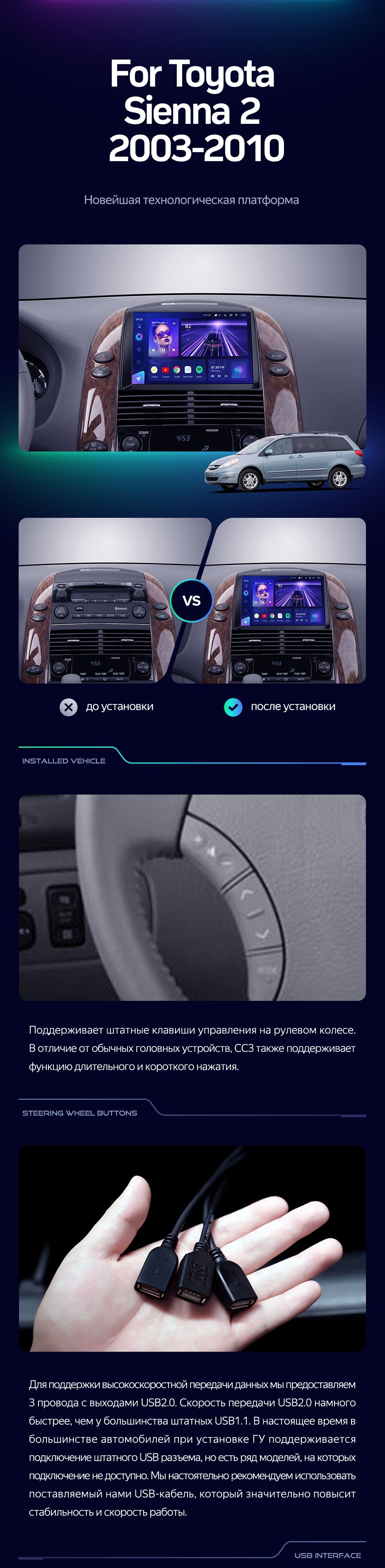 Штатная магнитола Teyes CC3 4/32 Toyota Sienna 2 II XL20 (2003-2010) - купить всего за 32 480 руб. в интернет-магазине в Пензе Teyes.com.ru. ✓ Самый лучший выбор мультимедиа ✓ Лучшая замена штатному ГУ ✓ Тел. +7 (800) 775-31-74