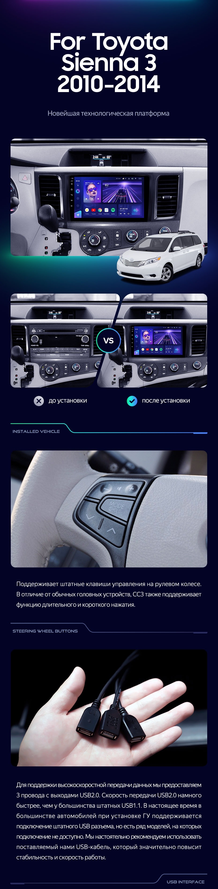 Штатная магнитола Teyes CC3 4/32 Toyota Sienna 3 XL30 (2010-2014) - купить всего за 35 730 руб. в интернет-магазине в Пензе Teyes.com.ru. ✓ Самый лучший выбор мультимедиа ✓ Лучшая замена штатному ГУ ✓ Тел. +7 (800) 775-31-74