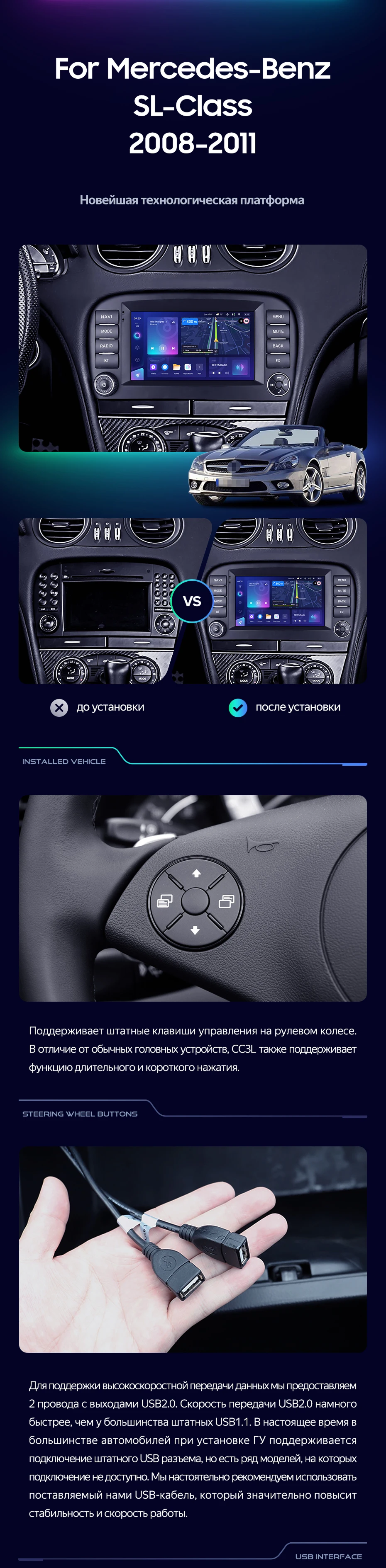 Штатная магнитола Teyes CC3 4/64 Mercedes-Benz SL-Class R230 (2008-2011) 7" - купить всего за 33 400 руб. в интернет-магазине в Пензе Teyes.com.ru. ✓ Самый лучший выбор мультимедиа ✓ Лучшая замена штатному ГУ ✓ Тел. +7 (800) 775-31-74