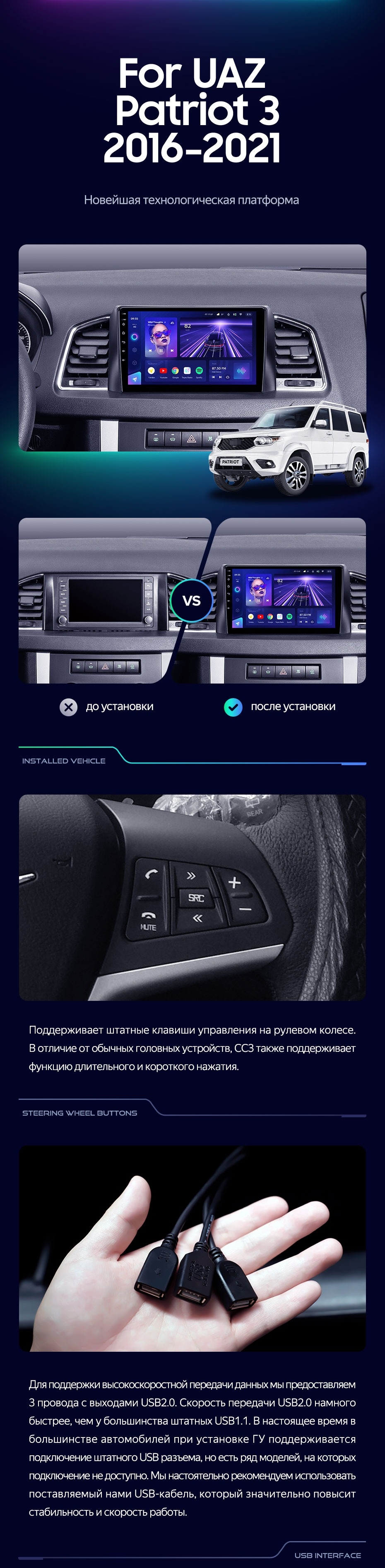 Штатная магнитола Teyes CC3 6/128 UAZ Patriot 3 (2016-2021) F1 - купить всего за 45 400 руб. в интернет-магазине в Пензе Teyes.com.ru. ✓ Самый лучший выбор мультимедиа ✓ Лучшая замена штатному ГУ ✓ Тел. +7 (800) 775-31-74