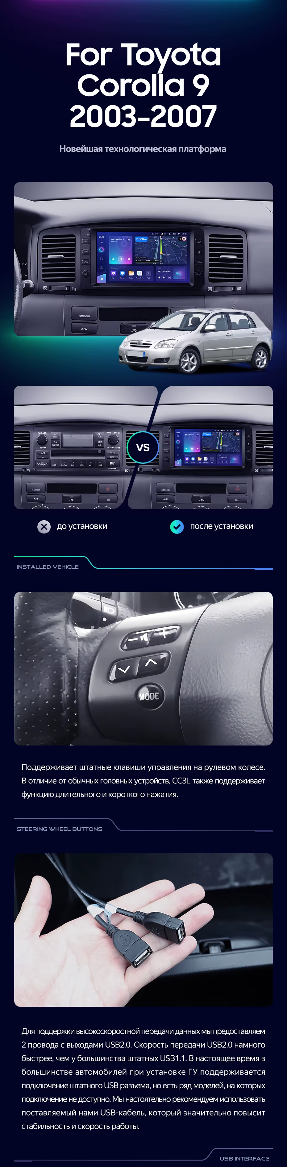 Штатная магнитола Teyes CC3L 4/32 Toyota Corolla 9 E120 E130 (2003-2007) 7" - купить всего за 28 300 руб. в интернет-магазине в Пензе Teyes.com.ru. ✓ Самый лучший выбор мультимедиа ✓ Лучшая замена штатному ГУ ✓ Тел. +7 (800) 775-31-74
