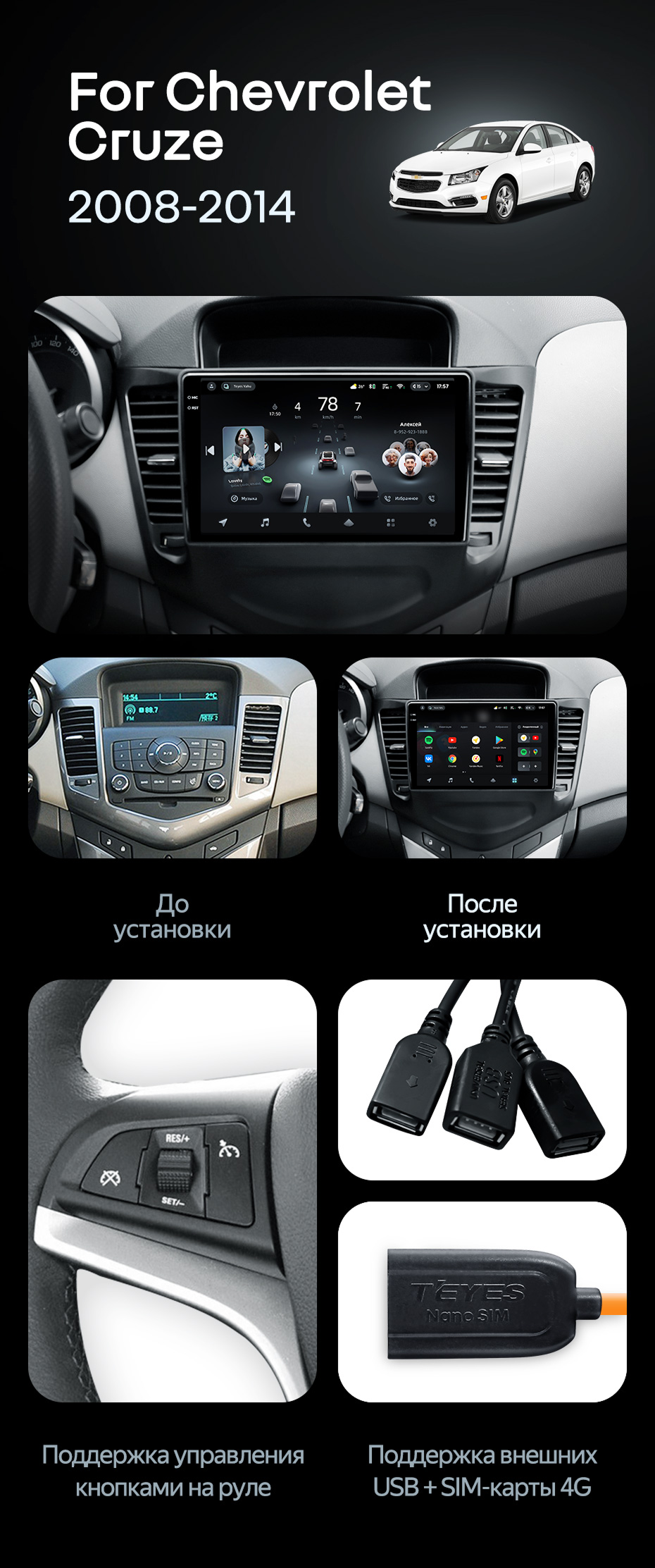 Штатная магнитола Teyes CC4 6/64 Chevrolet Cruze J300 (2008-2014) - купить всего за 48 050 руб. в интернет-магазине в Пензе Teyes.com.ru. ✓ Самый лучший выбор мультимедиа ✓ Лучшая замена штатному ГУ ✓ Тел. +7 (800) 775-31-74