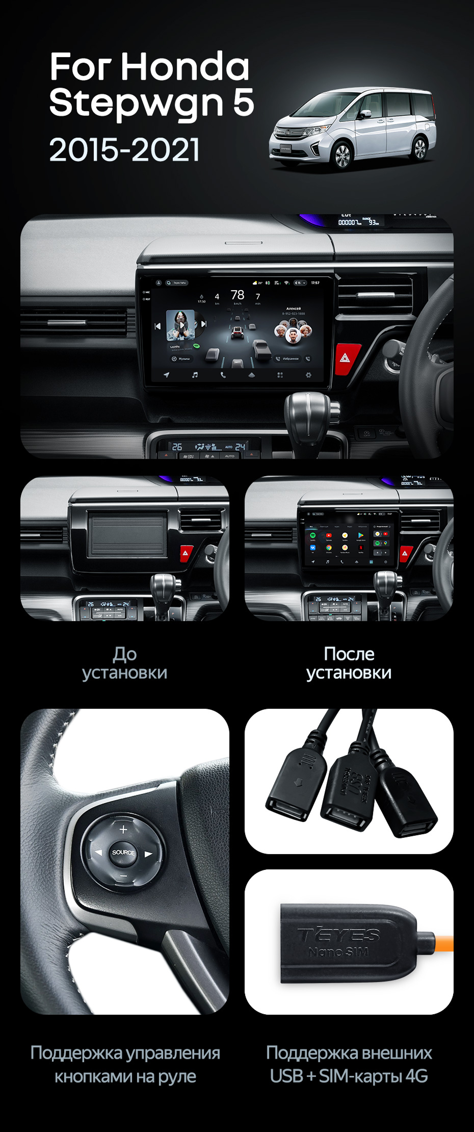 Штатная магнитола Teyes CC4 8/128 Honda Stepwgn 5 (2015-2021) правый руль - купить всего за 53 390 руб. в интернет-магазине в Пензе Teyes.com.ru. ✓ Самый лучший выбор мультимедиа ✓ Лучшая замена штатному ГУ ✓ Тел. +7 (800) 775-31-74