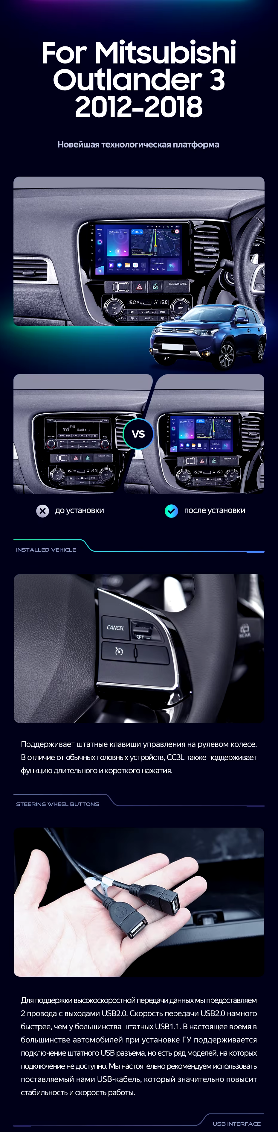 Штатная магнитола Teyes CC4 8/128 Mitsubishi Outlander 3 GF0W GG0W (2012-2018) Тип-B Правый руль - купить всего за 55 000 руб. в интернет-магазине в Пензе Teyes.com.ru. ✓ Самый лучший выбор мультимедиа ✓ Лучшая замена штатному ГУ ✓ Тел. +7 (800) 775-31-74