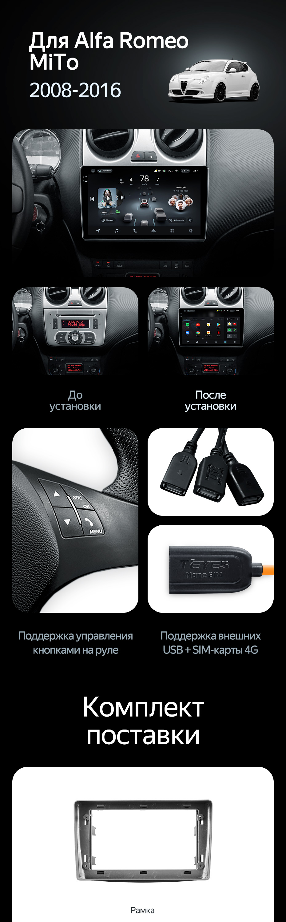 Штатная магнитола Teyes CC4 Pro 12/256 Alfa Romeo MiTo 955 (2008-2016) - купить всего за 69 150 руб. в интернет-магазине в Пензе Teyes.com.ru. ✓ Самый лучший выбор мультимедиа ✓ Лучшая замена штатному ГУ ✓ Тел. +7 (800) 775-31-74