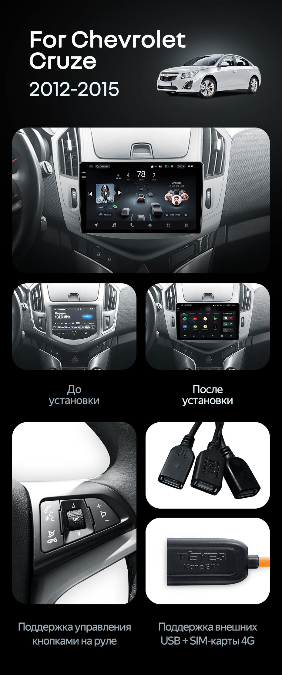Штатная магнитола Teyes CC4 Pro 12/256 Chevrolet Cruze J300 J308 (2012-2015) F1 - купить всего за 68 650 руб. в интернет-магазине в Пензе Teyes.com.ru. ✓ Самый лучший выбор мультимедиа ✓ Лучшая замена штатному ГУ ✓ Тел. +7 (800) 775-31-74