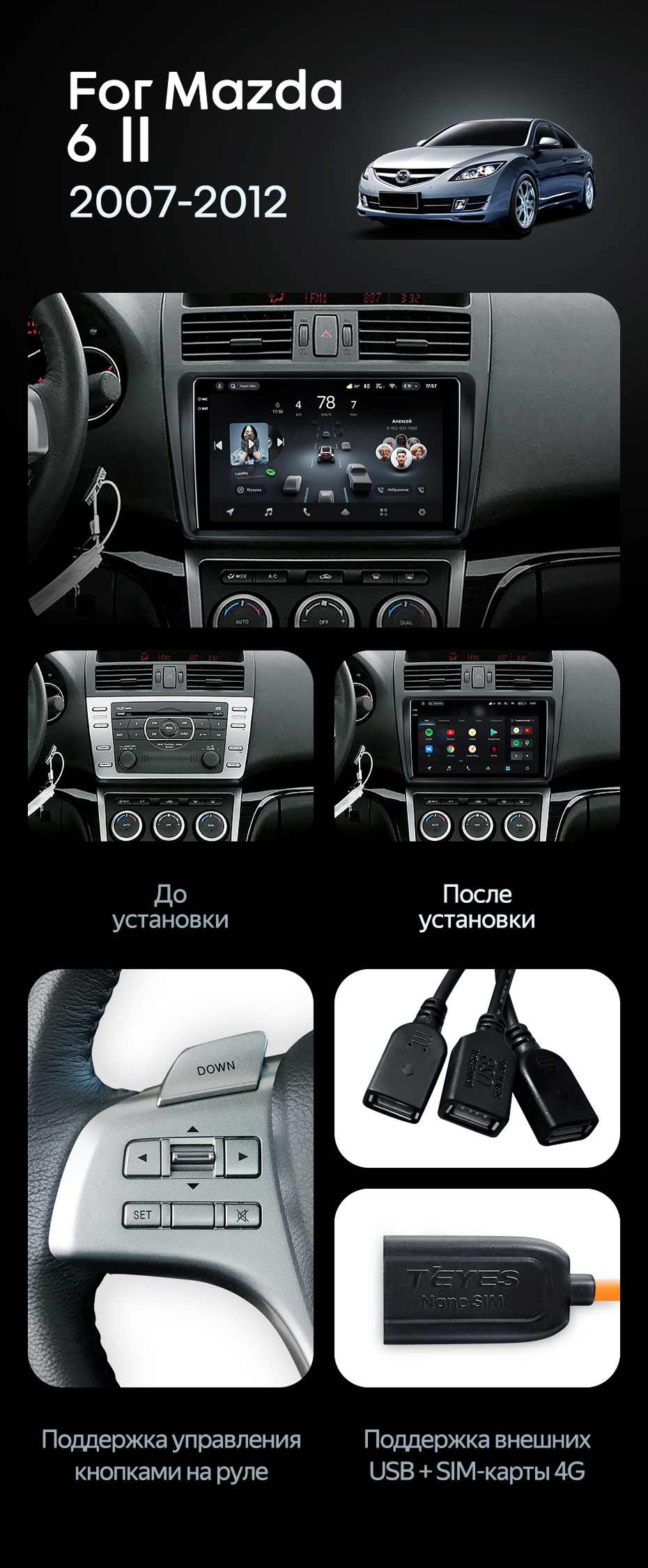 Штатная магнитола Teyes CC4 Pro 12/256 Mazda 6 2 GH (2007-2012) - купить всего за 66 230 руб. в интернет-магазине в Пензе Teyes.com.ru. ✓ Самый лучший выбор мультимедиа ✓ Лучшая замена штатному ГУ ✓ Тел. +7 (800) 775-31-74