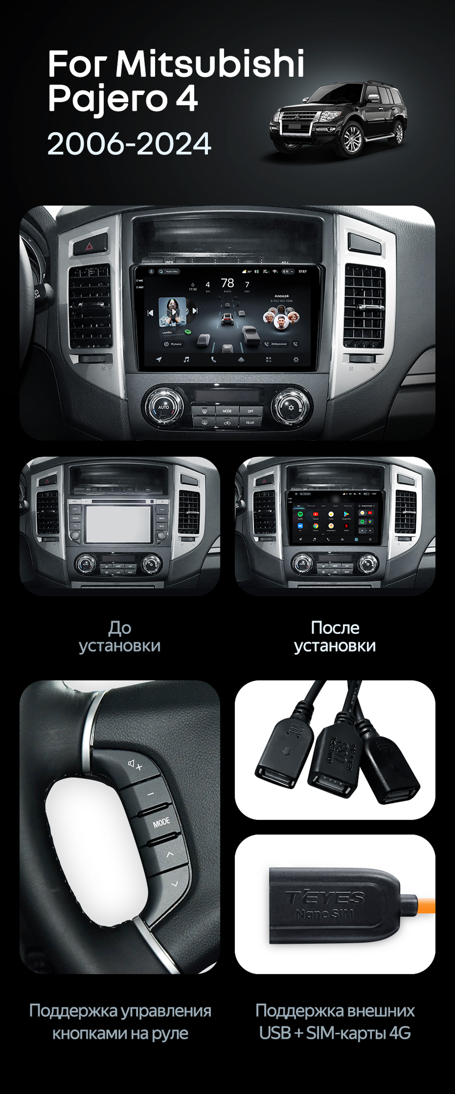Штатная магнитола Teyes CC4 Pro 12/256 Mitsubishi Pajero 4 V80 V90 (2006-2024) - купить всего за 68 360 руб. в интернет-магазине в Пензе Teyes.com.ru. ✓ Самый лучший выбор мультимедиа ✓ Лучшая замена штатному ГУ ✓ Тел. +7 (800) 775-31-74