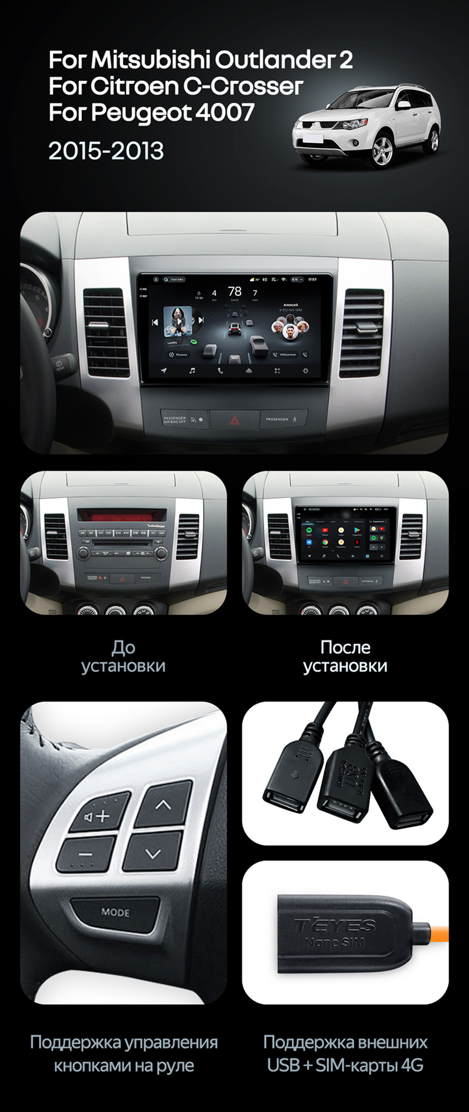 Штатная магнитола Teyes CC4 Pro 12/256 Peugeot 4007 (2007-2012) Тип-B - купить всего за 67 480 руб. в интернет-магазине в Пензе Teyes.com.ru. ✓ Самый лучший выбор мультимедиа ✓ Лучшая замена штатному ГУ ✓ Тел. +7 (800) 775-31-74