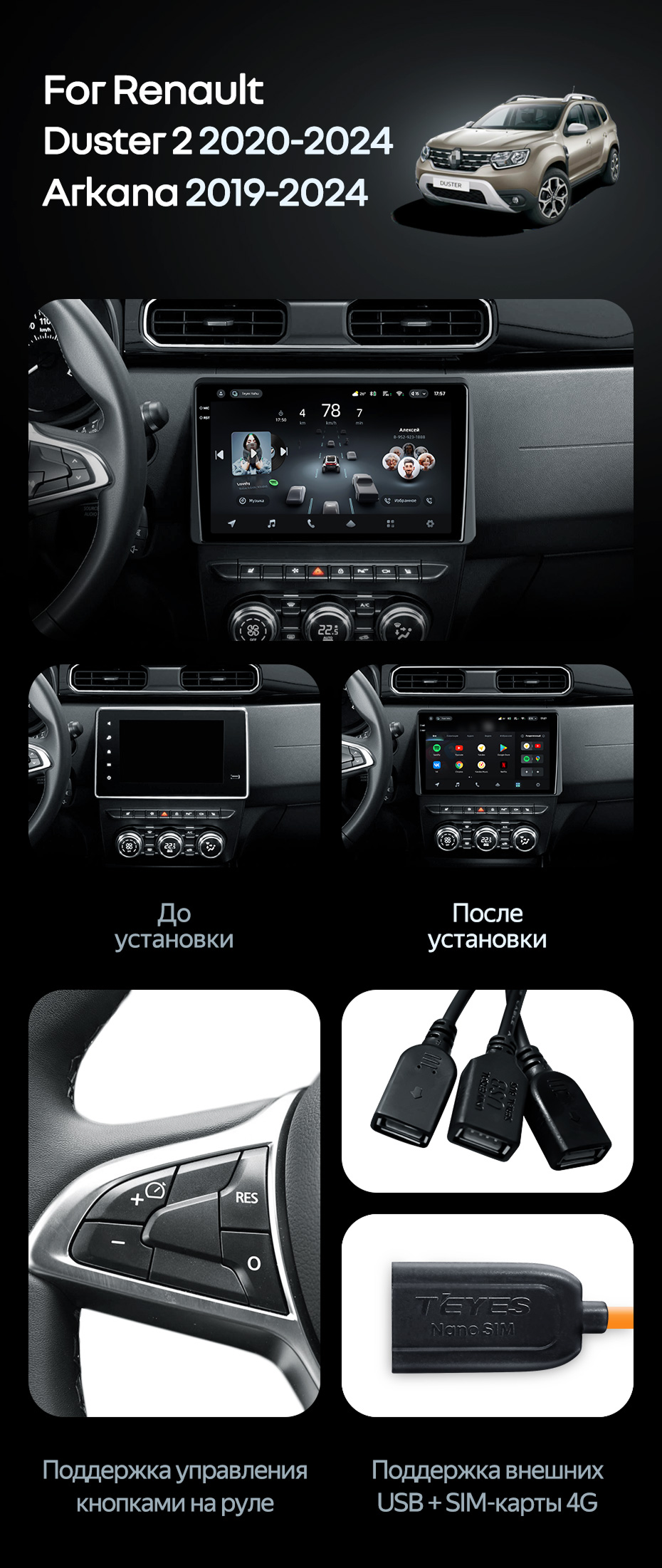 Штатная магнитола Teyes CC4 Pro 12/256 Renault Duster HM 2 (2020-2023) F1 - купить всего за 68 120 руб. в интернет-магазине в Пензе Teyes.com.ru. ✓ Самый лучший выбор мультимедиа ✓ Лучшая замена штатному ГУ ✓ Тел. +7 (800) 775-31-74