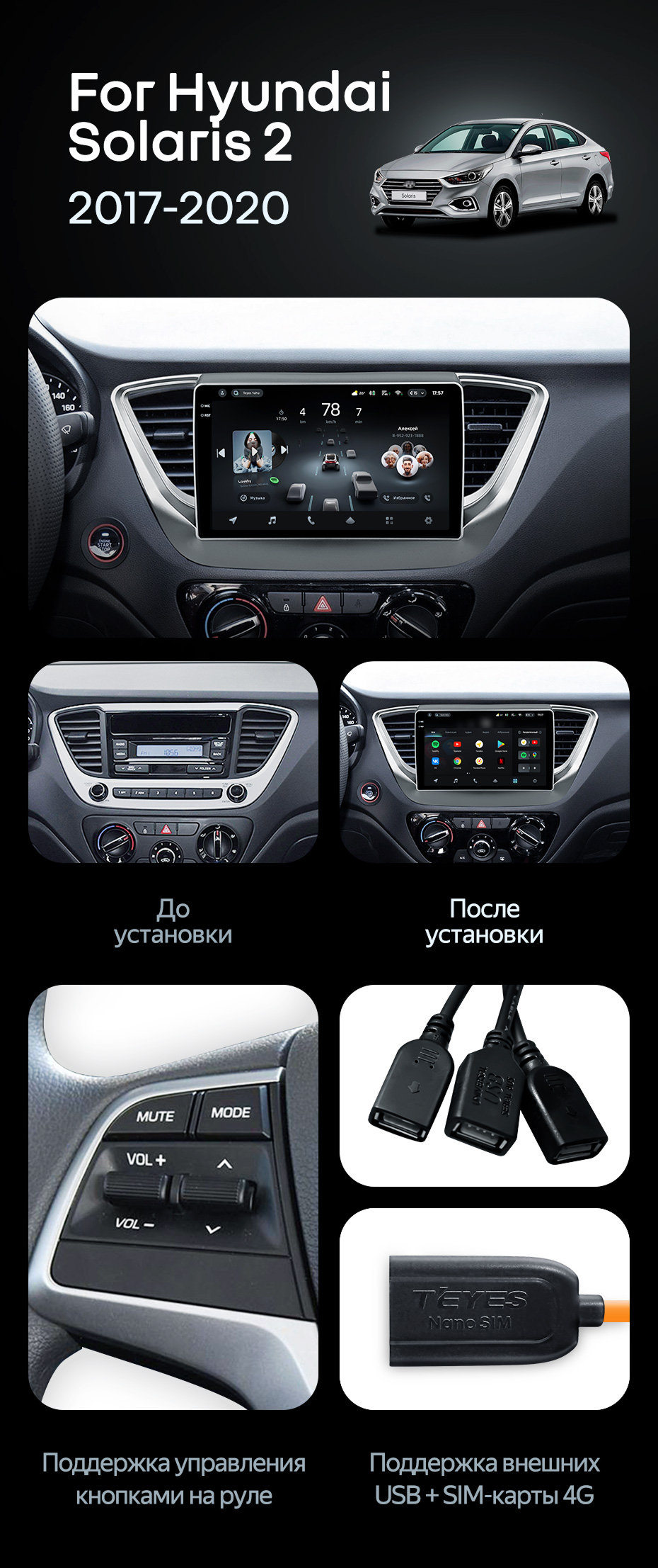 Штатная магнитола Teyes CC4 Pro 8/128 Hyundai Solaris 2 (2017-2020) F1 Тип-B - купить всего за 59 750 руб. в интернет-магазине в Пензе Teyes.com.ru. ✓ Самый лучший выбор мультимедиа ✓ Лучшая замена штатному ГУ ✓ Тел. +7 (800) 775-31-74