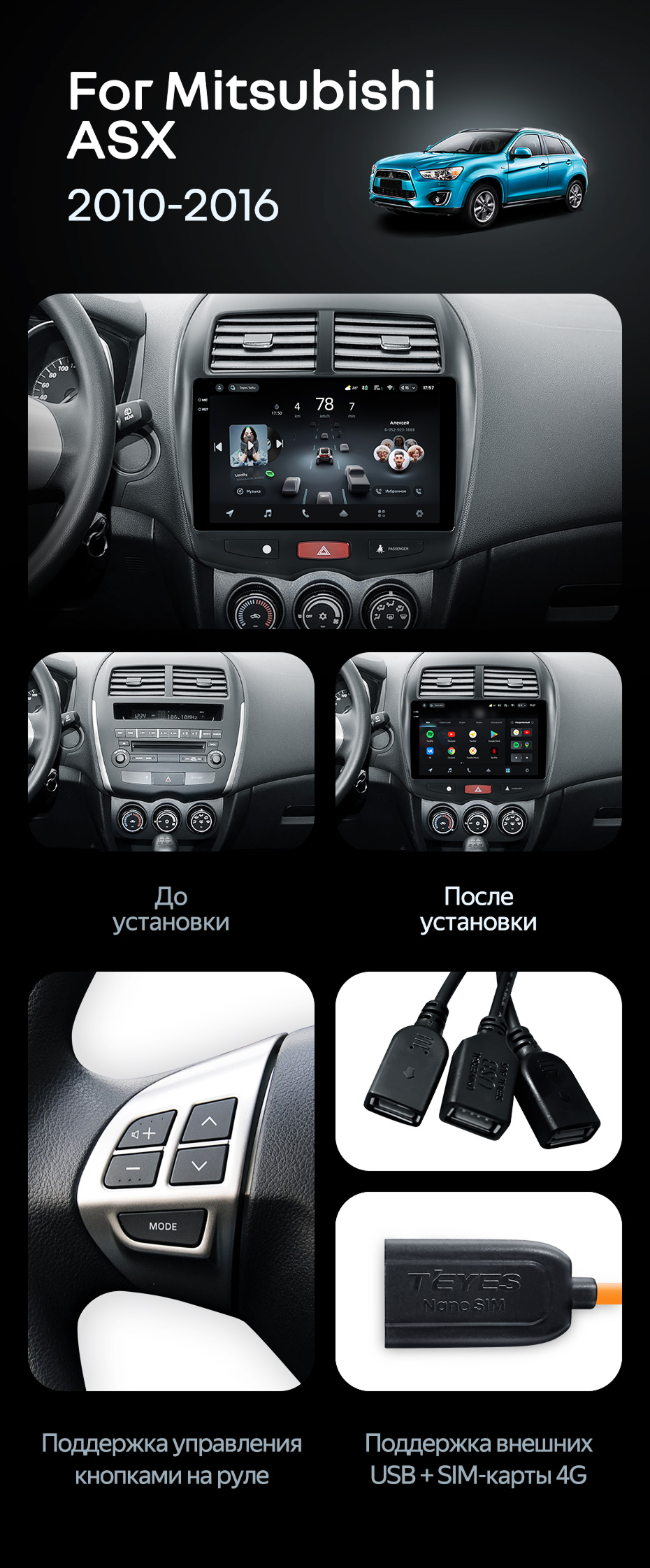 Штатная магнитола Teyes CC4 Pro 8/128 Mitsubishi ASX 1 (2010-2016) Тип-A - купить всего за 55 940 руб. в интернет-магазине в Пензе Teyes.com.ru. ✓ Самый лучший выбор мультимедиа ✓ Лучшая замена штатному ГУ ✓ Тел. +7 (800) 775-31-74
