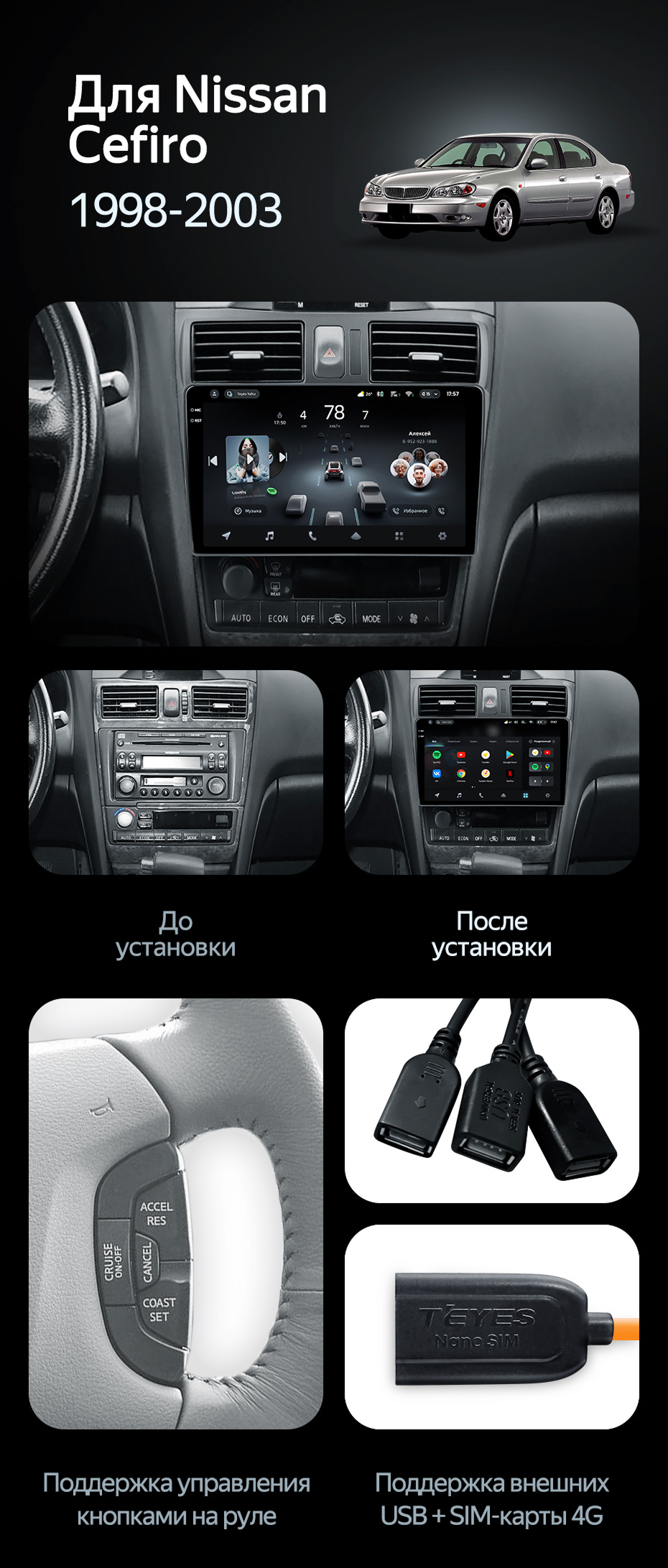Штатная магнитола Teyes CC4 Pro 8/128 Nissan Cefiro 3 A33 (1998-2003) F2 - купить всего за 58 400 руб. в интернет-магазине в Пензе Teyes.com.ru. ✓ Самый лучший выбор мультимедиа ✓ Лучшая замена штатному ГУ ✓ Тел. +7 (800) 775-31-74