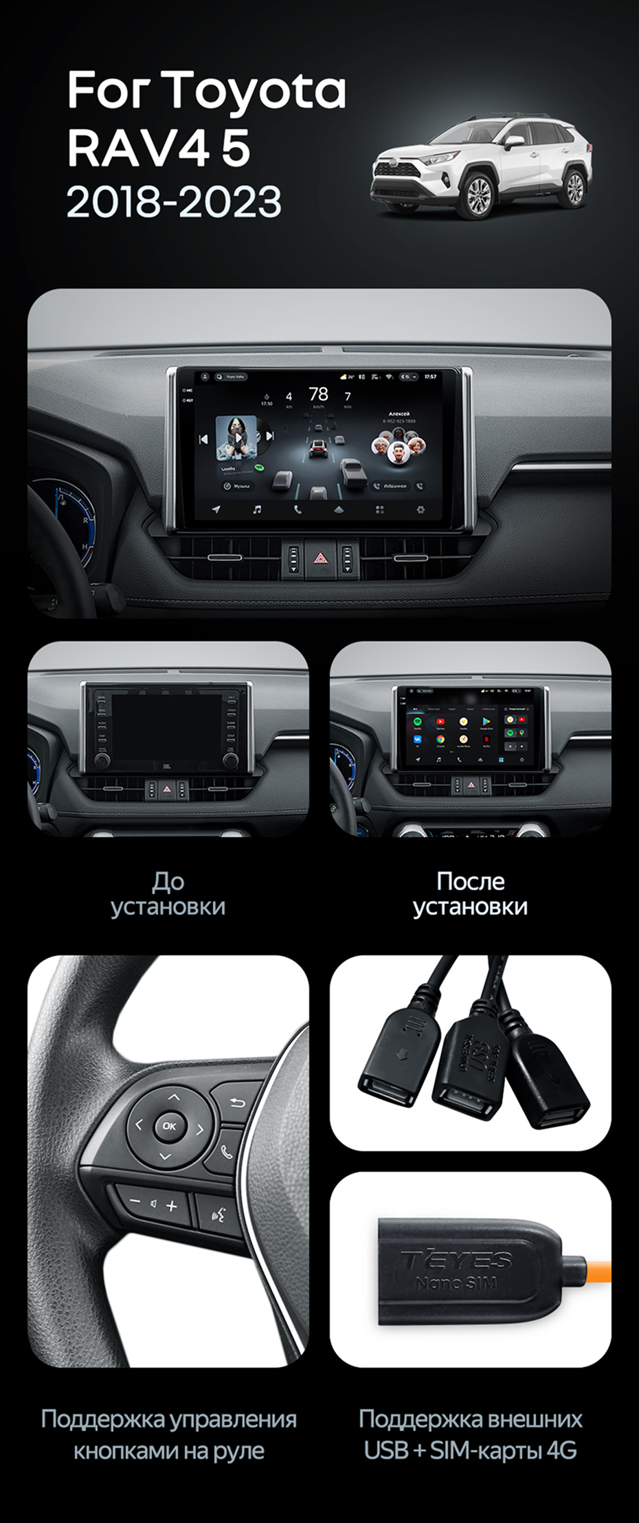 Штатная магнитола Teyes CC4 Pro 8/128 Toyota RAV4 XA50 (2018-2023) F1 - купить всего за 59 180 руб. в интернет-магазине в Пензе Teyes.com.ru. ✓ Самый лучший выбор мультимедиа ✓ Лучшая замена штатному ГУ ✓ Тел. +7 (800) 775-31-74