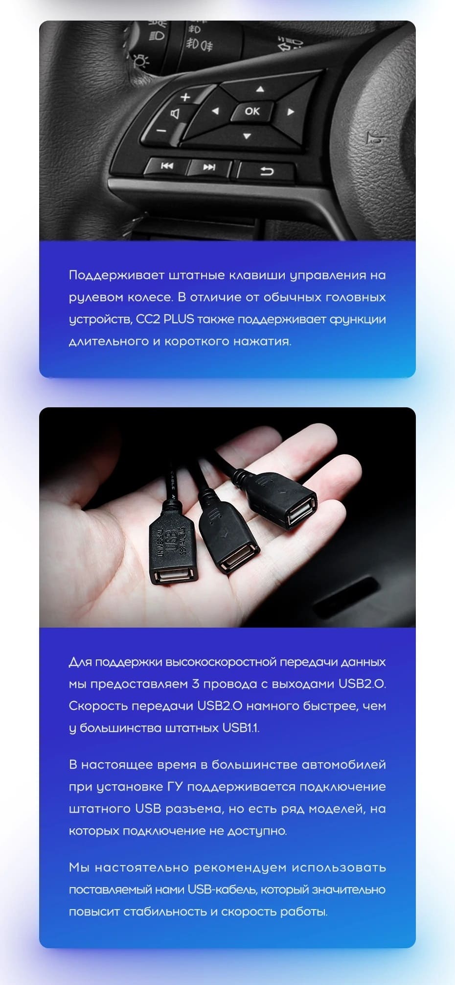 CarPlay, Android Auto, 4G, Wi-Fi, подключение камер и полезных аксессуаров.
