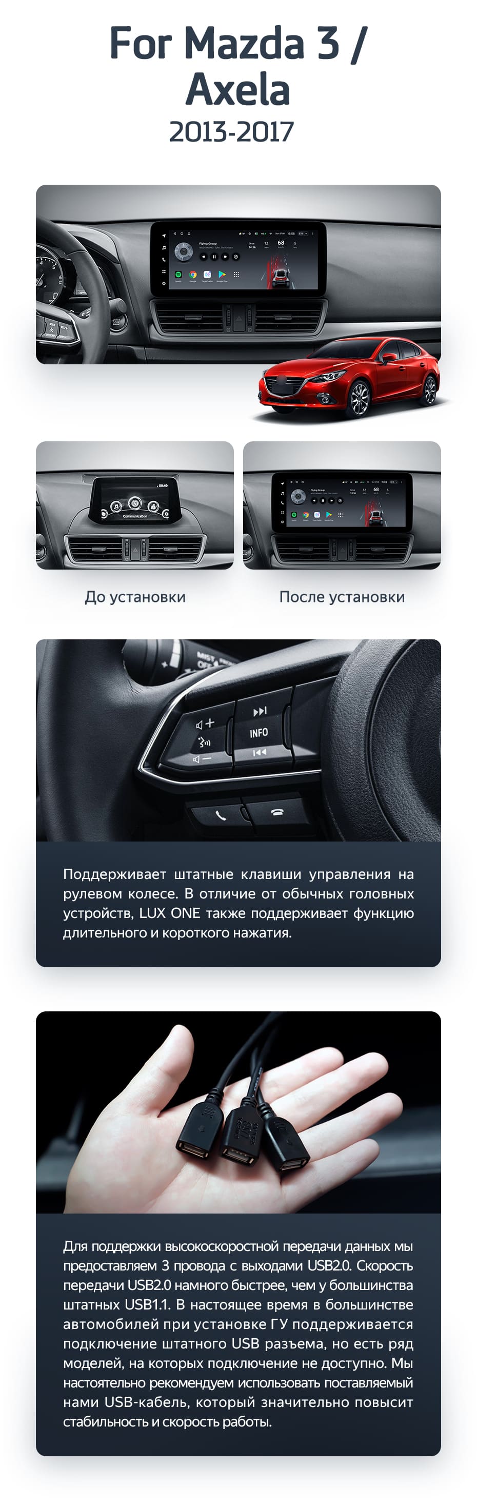 Штатная магнитола Teyes LUX ONE 360 6/128 Mazda Axela 3 (2013-2017) Тип-A Правый руль - купить всего за 62 800 руб. в интернет-магазине в Пензе Teyes.com.ru. ✓ Самый лучший выбор мультимедиа ✓ Лучшая замена штатному ГУ ✓ Тел. +7 (800) 775-31-74