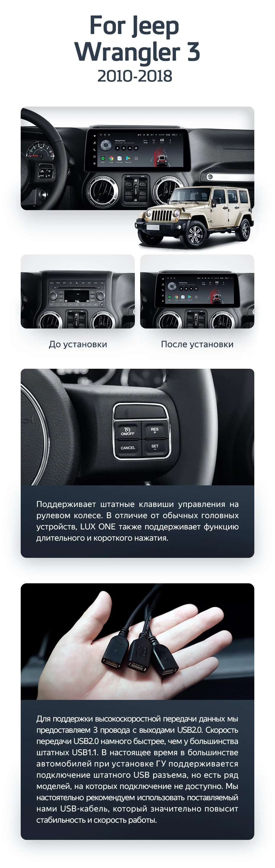 Штатная магнитола Teyes LUX ONE 4/64 Jeep Wrangler 3 JK (2010-2018) - купить всего за 38 800 руб. в интернет-магазине в Пензе Teyes.com.ru. ✓ Самый лучший выбор мультимедиа ✓ Лучшая замена штатному ГУ ✓ Тел. +7 (800) 775-31-74