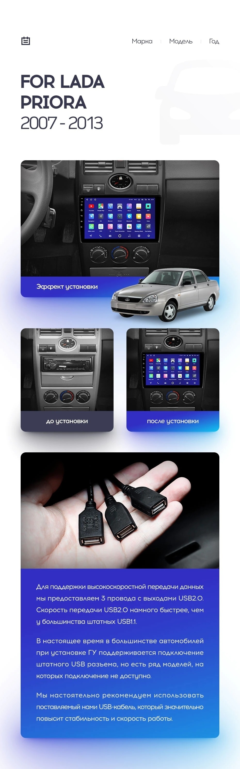 Полный комплект установки магнитолы Teyes с рамкой и проводкой можно выбрать в каталоге штатных магнитол Lada Priora 1 (2007-2013).