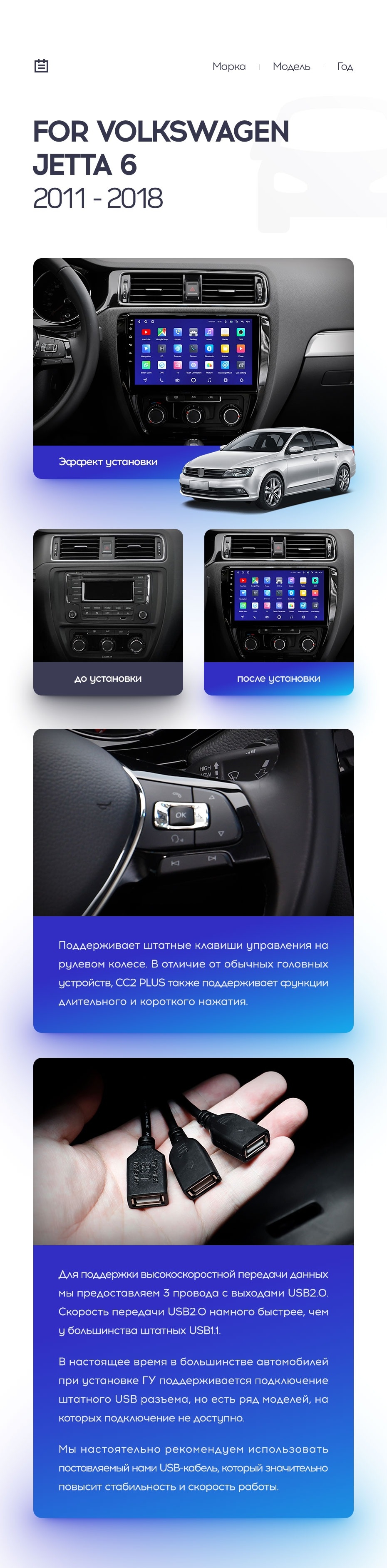 Полный комплект установки магнитолы Teyes с рамкой и проводкой можно выбрать в каталоге штатных магнитол Volkswagen Jetta 6 (2011-2018).
