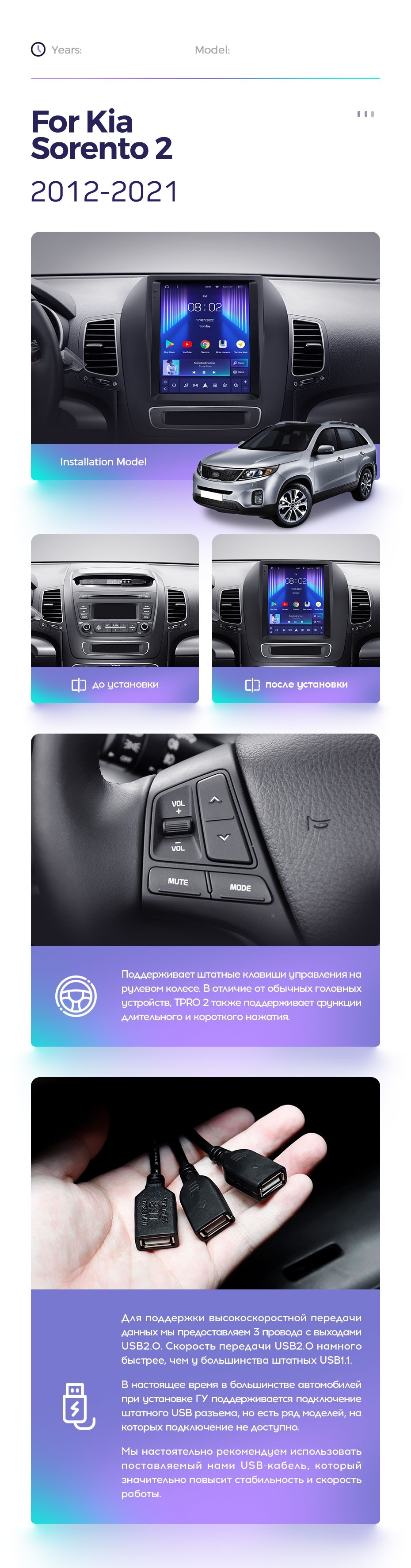 Полный комплект установки магнитолы Teyes с рамкой и проводкой можно выбрать в каталоге штатных магнитол Kia Sorento 2 XM (2012-2021).